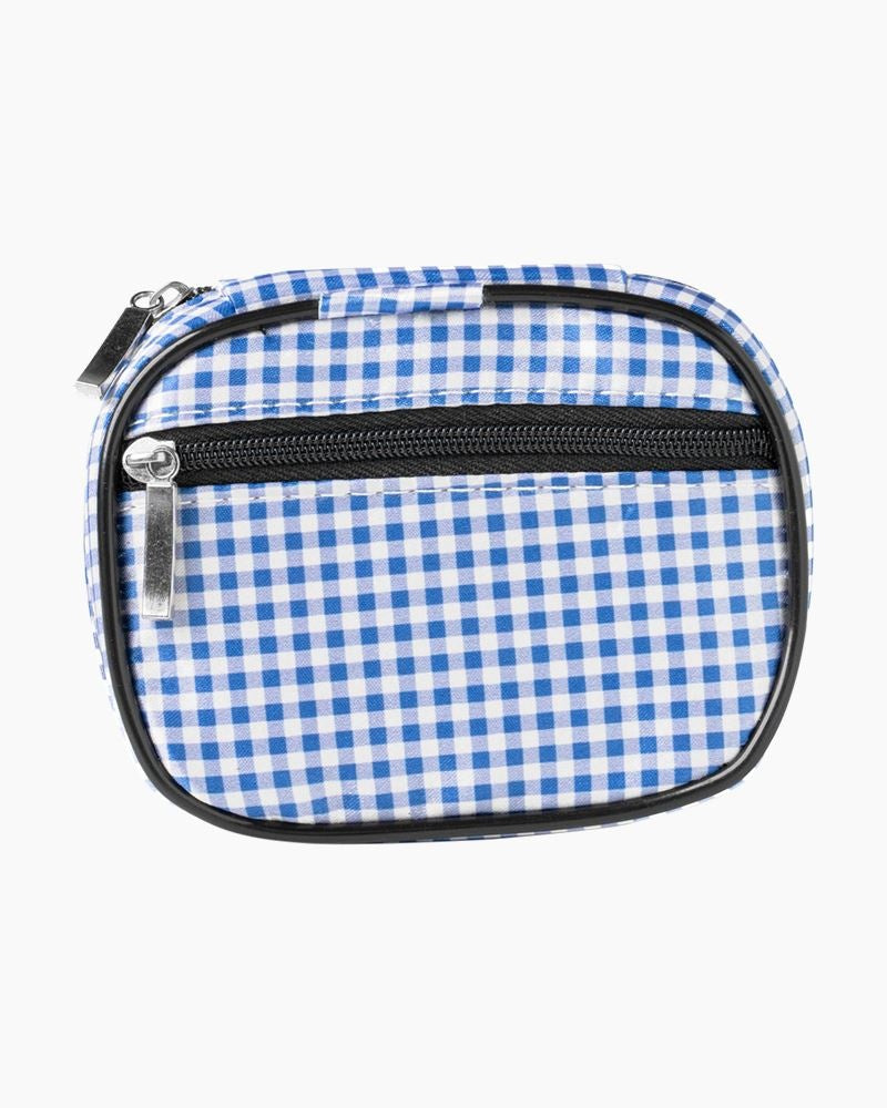 Keep your weekly pills and vitamins organized and secure in this fashion print pill box clutch Microfiber Construction, Zip Around Closure Inside Clear Plastic Pill Box with 8 Snap Compartments - Mon, Tue, Wed, Thu, Fri, Sat, Sun, Xtr Pill Box Secured with Elastic Band, Padded Interior, Small Back Zip Pocket.